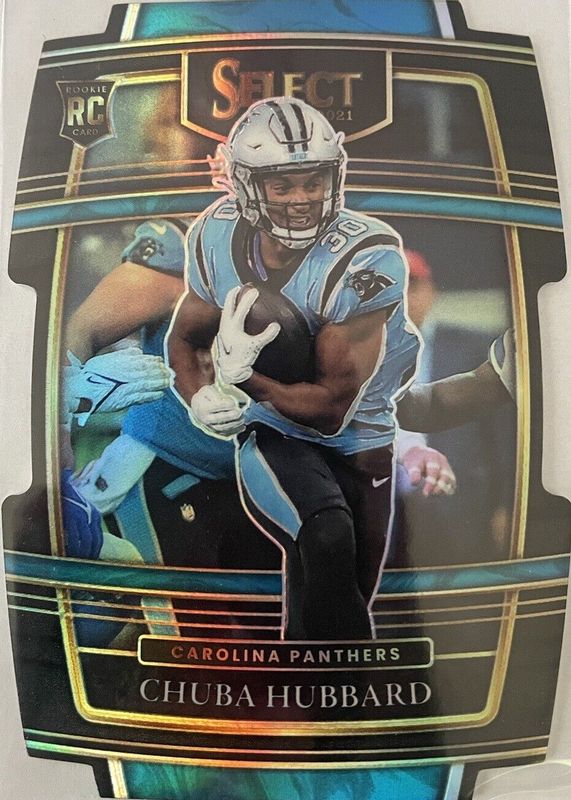 This card is 1 of 131 Chuba Hubbard's card variations in the 2021 Select set being tracked by Sports Card Investor, including Club Level, Concourse, Field Level, Premier Level, and Club Level Black & Gold Die-Cut.