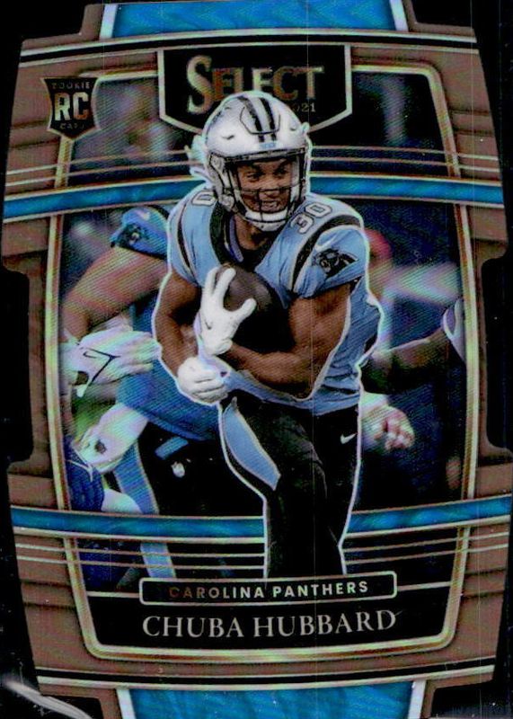 This card is 1 of 131 Chuba Hubbard's card variations in the 2021 Select set being tracked by Sports Card Investor, including Club Level, Concourse, Field Level, Premier Level, and Club Level Black & Gold Die-Cut.