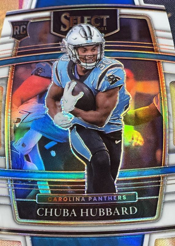 This card is 1 of 131 Chuba Hubbard's card variations in the 2021 Select set being tracked by Sports Card Investor, including Club Level, Concourse, Field Level, Premier Level, and Club Level Black & Gold Die-Cut.