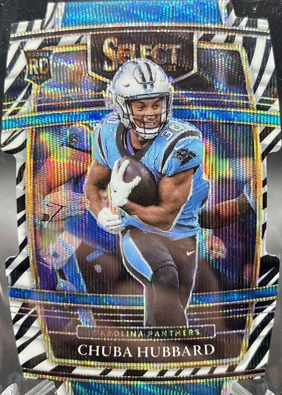 2021 Panini Select #76 Chuba Hubbard Zebra Prizm Die Cut Carolina Panthers