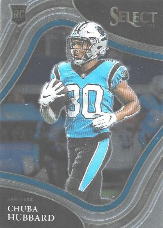 This card is 1 of 131 Chuba Hubbard's card variations in the 2021 Select set being tracked by Sports Card Investor, including Club Level, Concourse, Premier Level, Club Level Black & Gold Die-Cut, and Club Level Disco.