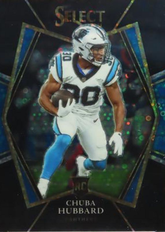 This card is 1 of 131 Chuba Hubbard's card variations in the 2021 Select set being tracked by Sports Card Investor, including Club Level, Concourse, Field Level, Premier Level, and Club Level Black & Gold Die-Cut.