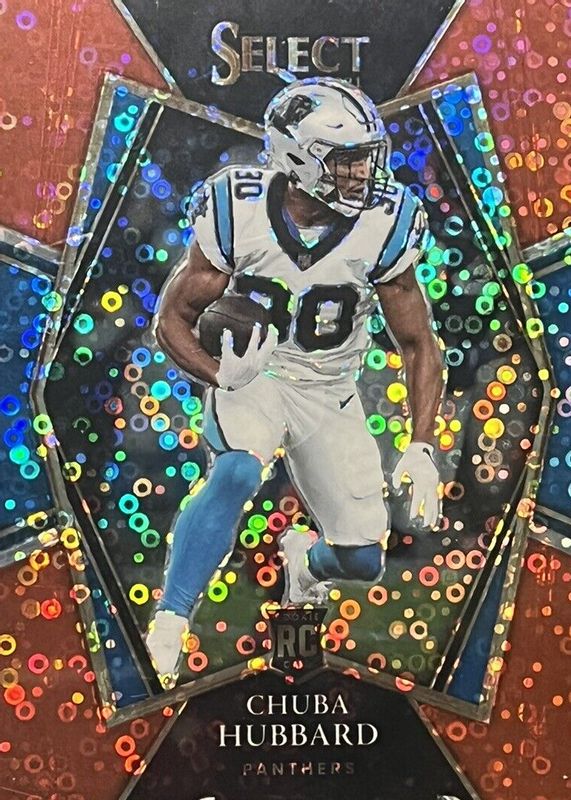 2021 Select Chuba Hubbard Red Disco Prizm Premier Level Rookie RC #24/49