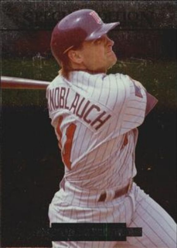 The Chuck Knoblauch 1995 Upper Deck #218 Special Edition card is 1 of 5 Chuck Knoblauch's card variations in the 1995 Upper Deck set being tracked by Sports Card Investor, including Base, Electric Diamond, Electric Diamond Gold, and Special Edition Gold.