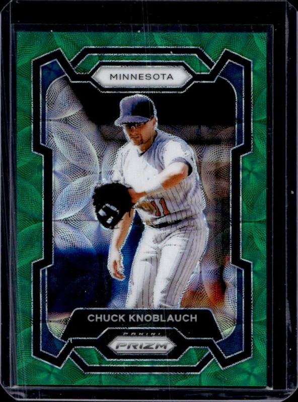 The Chuck Knoblauch 2024 Prizm #179 Green Scope /75 card is 1 of 30 Chuck Knoblauch's card variations in the 2024 Prizm set being tracked by Sports Card Investor, including Base, Blue Ice, Green, Green Ice, and Pink Ice.