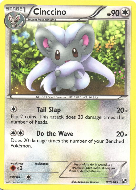The Cinccino 2011 Black & White #089/114 Base card in Raw TCG (Lightly Played) condition has not changed in price in the last 30 days and was last sold for $1.49 .