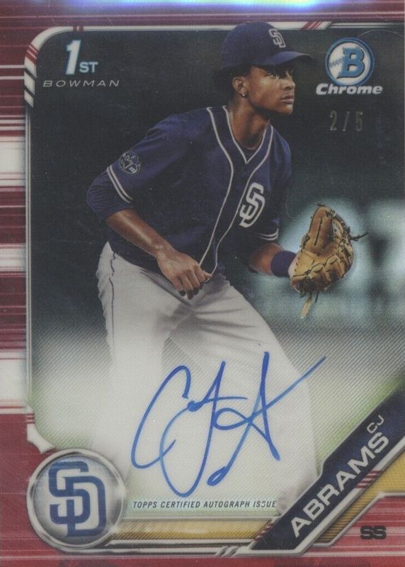 CJ Abrams 2019 Bowman Draft #CDA-CA Chrome DP Auto - Red Refractor /5 (1st) RAW Price Guide