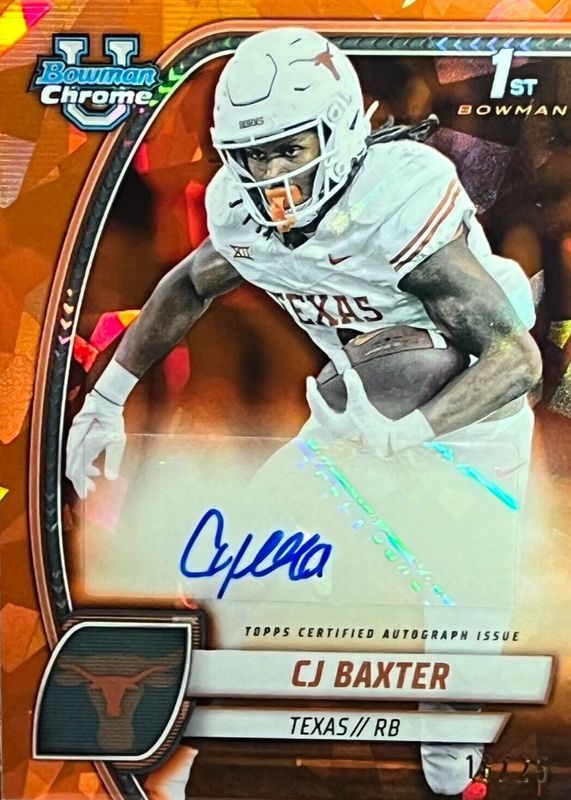 2024 Bowman University Chrome Sapphire CJ Baxter Orange Auto /25 Texas