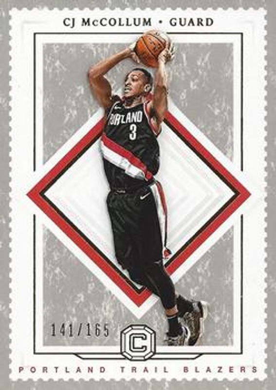 The CJ McCollum 2017 Cornerstones #14 Base /165 card is 1 of 6 CJ McCollum's card variations in the 2017 Cornerstones set being tracked by Sports Card Investor, including Crystal /89, Quartz /49, Granite /25, Marble /10, and Onyx /1.
