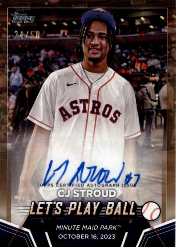 2024 Topps Series 2 CJ Stroud Lets Play Ball Gold Auto #42/50 Houston Astros