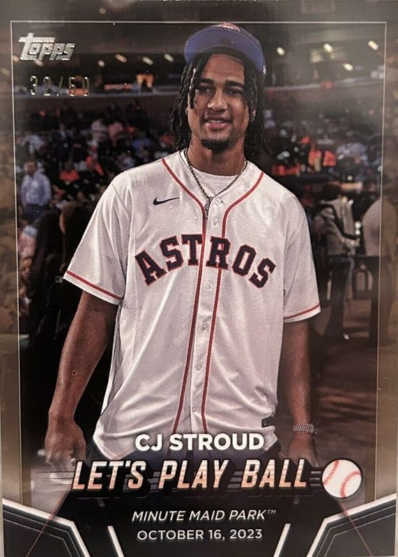 This card is 1 of 10 CJ Stroud's card variations in the 2024 Topps set being tracked by Sports Card Investor, including Let's Play Ball, Let's Play Ball - Blue, Let's Play Ball - Black /299, Let's Play Ball Autographs /99, and Let's Play Ball Autographs - Gold /50.