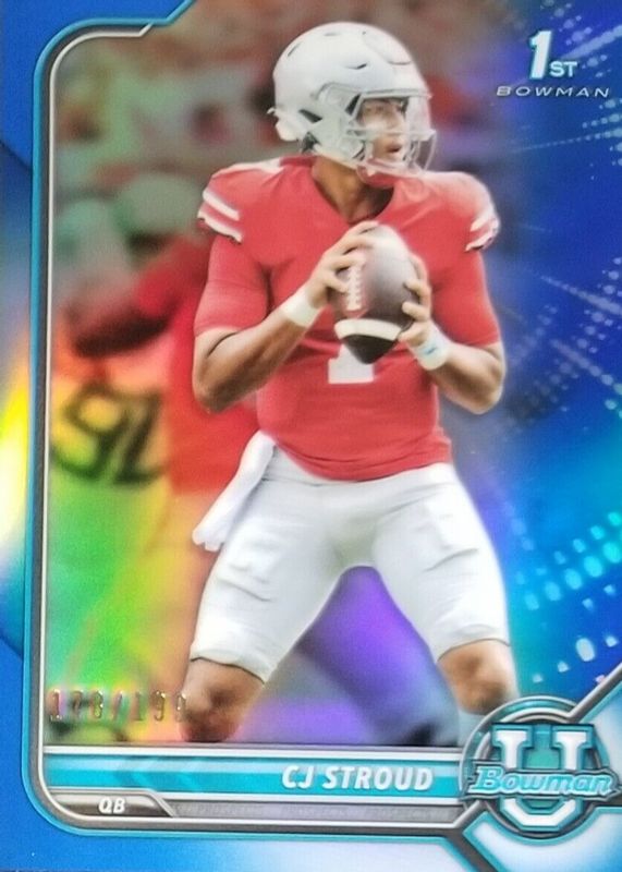 CJ Stroud 1st Chrome Blue Refractor /199 RC 2021-22 Bowman U University #3