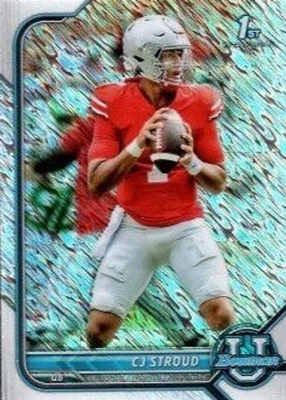 Best Prices Available For Sale of CJ Stroud 2021 Bowman University #3 Chrome Prospects - Shimmer Refractor (1st)