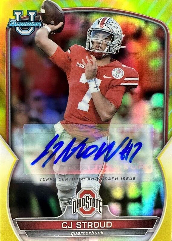 CJ Stroud Autograph 2022 Bowman Chrome U Yellow Refractor 26/75 Ohio State ROY
