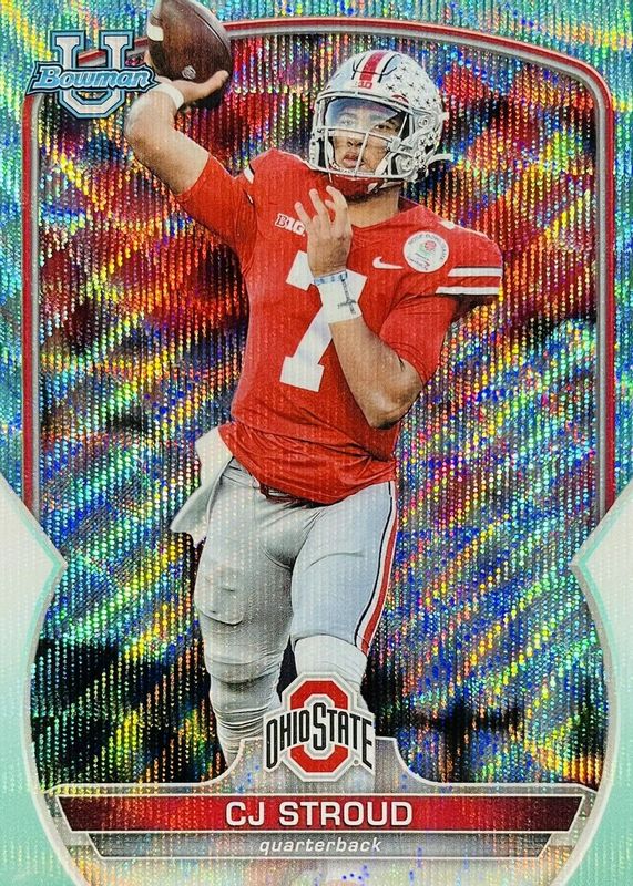 Best Prices Available For Sale of CJ Stroud 2022 Bowman Chrome University #100 Prospects - Aqua Wave Refractor /299