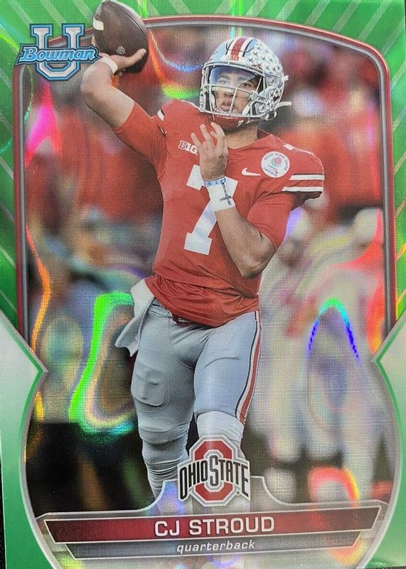 2022 BOWMAN CHROME UNIVERSITY CJ STROUD #100 GREEN LAVA REFRACTOR #D/99