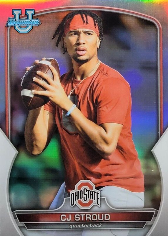 2022 Bowman Chrome U Football Card #100 CJ Stroud Refractor Image Variation