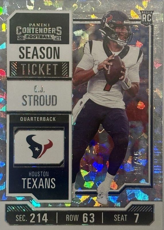 C.J. STROUD 2023 PANINI CONTENDERS #40 ROOKIE SEASON TICKET CRACKED ICE RC 06/25