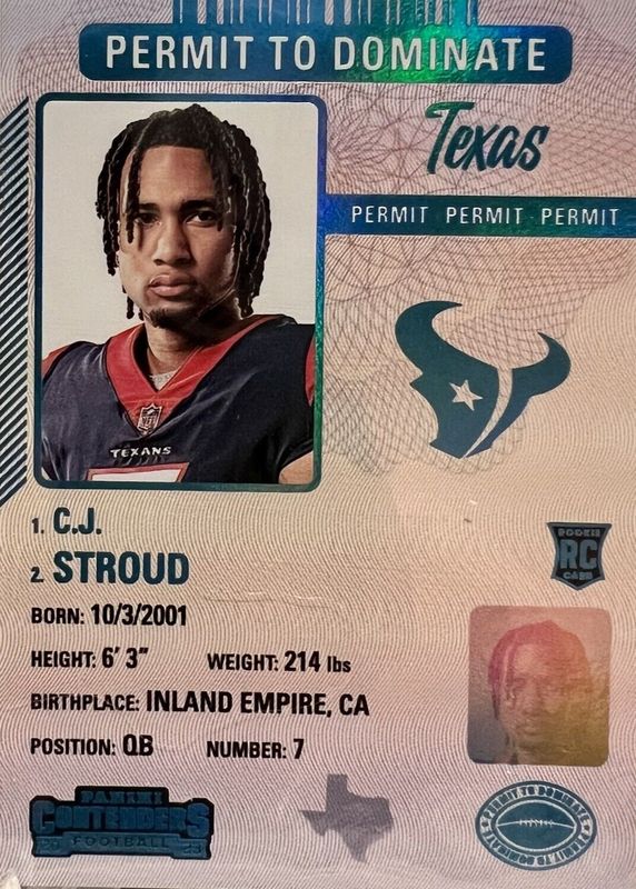 2023 Panini Contenders Permit to Dominate #4 CJ Stroud Texans RC Rookie