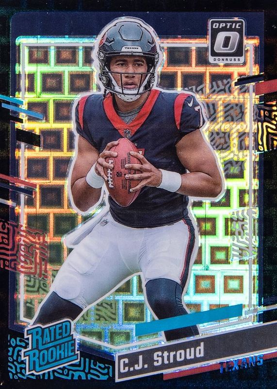 The CJ Stroud 2023 Donruss #339 Optic Preview - Black Pandora /25 Rookie card in Raw condition has not changed in price in the last 30 days and was last sold for $900.00 .