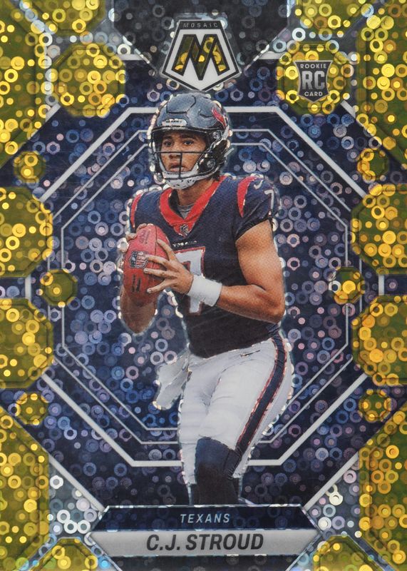 This card is 1 of 94 CJ Stroud's card variations in the 2023 Mosaic set being tracked by Sports Card Investor, including Base, NFL Debut, Choice Red & Green, Green, and Mosaic.