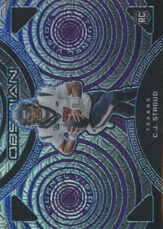 This card is 1 of 58 CJ Stroud's card variations in the 2023 Obsidian set being tracked by Sports Card Investor, including Base, Asia, Electric Etch Red Flood /90, Electric Etch Purple /75, and Electric Etch Contra /(SSP).