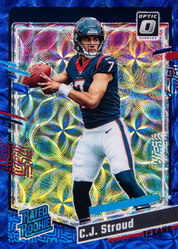 C.J. STROUD 2023 DONRUSS OPTIC BLUE SCOPE PRIZM RATED ROOKIE RC #244 **TEXANS**