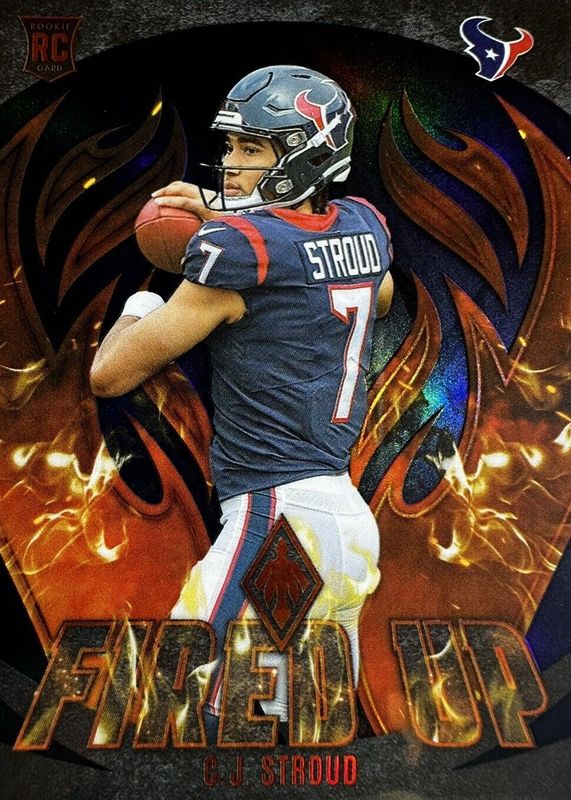 The CJ Stroud 2023 Phoenix #FU-2 Fired Up - Black /10 Rookie card in Raw condition has not changed in price in the last 30 days and was last sold for $510.00 .