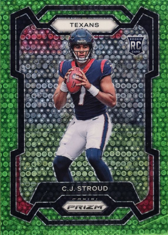 This card is 1 of 111 CJ Stroud's card variations in the 2023 Prizm set being tracked by Sports Card Investor, including Base, Disco, Green, Green Ice, and Green Wave.