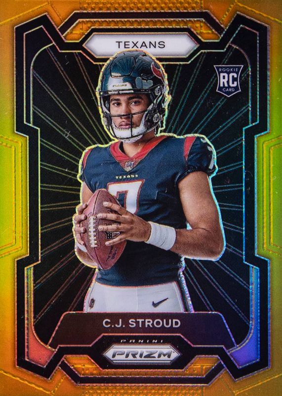 The CJ Stroud 2023 Prizm #302 Rookie Variation - Gold /10 card in Raw condition has not changed in price in the last 30 days and was last sold for $3,550.00 .