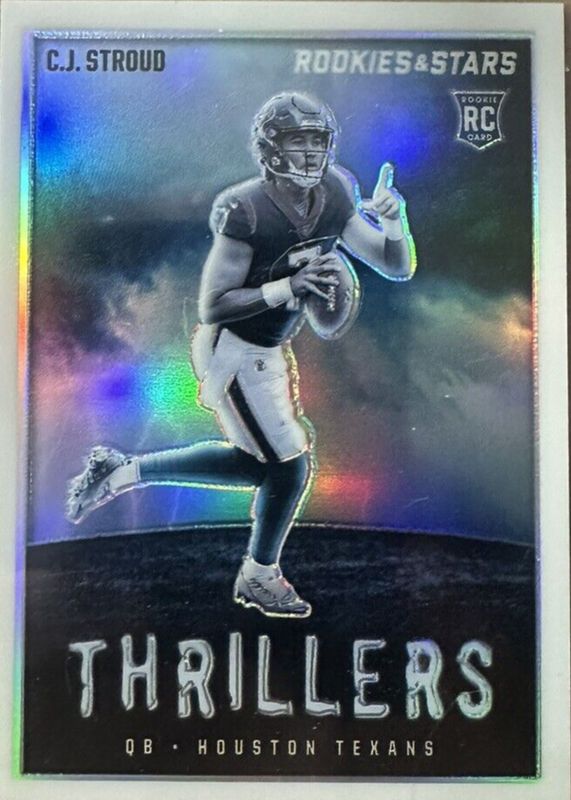 The CJ Stroud 2023 Rookies & Stars #TH-12 Thrillers - White /149 card in Raw condition has not changed in price in the last 30 days and was last sold for $21.50 .