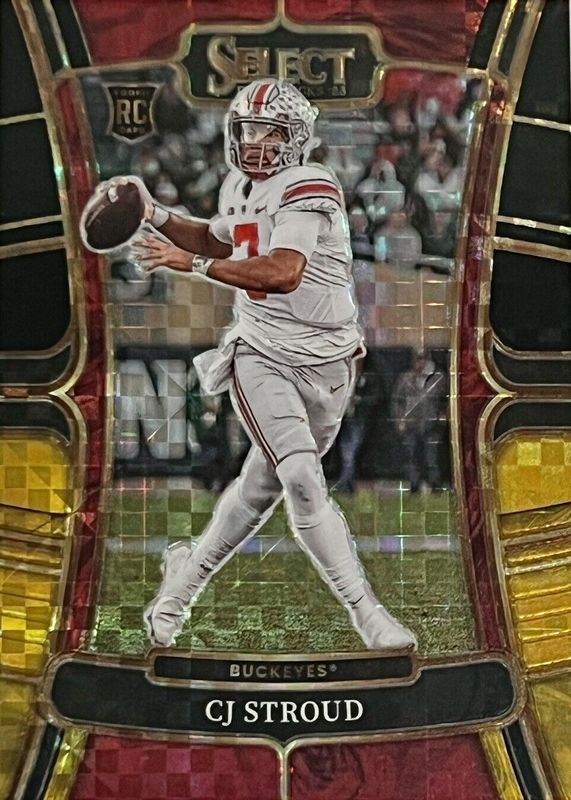 This card is 1 of 94 CJ Stroud's card variations in the 2023 Select Draft Picks set being tracked by Sports Card Investor, including Concourse, Field Level, Concourse Blue, Concourse Gold Lazer, and Concourse Green Lazer.