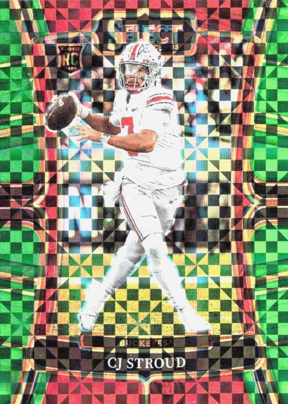 The CJ Stroud 2023 Select Draft Picks #2 Concourse Green Squares Rookie card in Raw condition has not changed in price in the last 30 days and was last sold for $1.50 .