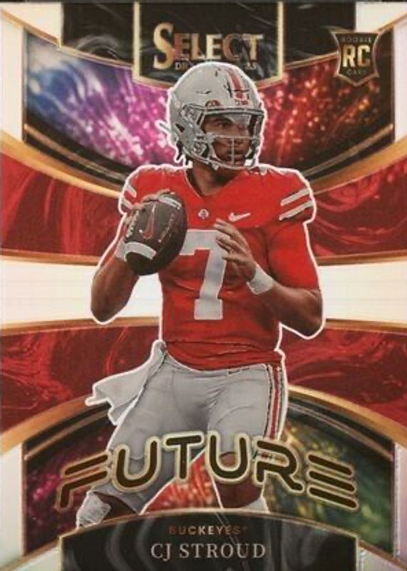 The CJ Stroud 2023 Select Draft Picks #FUT-3 Future - Silver Rookie card in Raw condition has moved up $1.50 (+100%) in the last 30 days and was last sold for $3.00 .