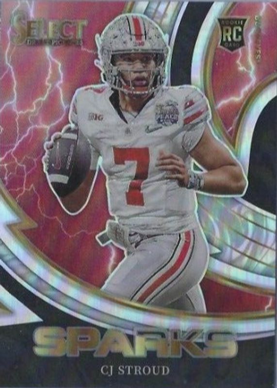 The CJ Stroud 2023 Select Draft Picks #SPR-CJ Sparks - Silver Rookie card in Raw condition has not changed in price in the last 30 days and was last sold for $2.94 .