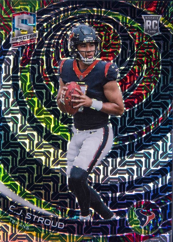 This card is 1 of 23 CJ Stroud's card variations in the 2023 Spectra set being tracked by Sports Card Investor, including Base, Silver, Celestial /99, Hyper /75, and Interstellar /60.