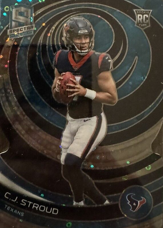 This card is 1 of 23 CJ Stroud's card variations in the 2023 Spectra set being tracked by Sports Card Investor, including Base, Silver, Celestial /99, Hyper /75, and Interstellar /60.