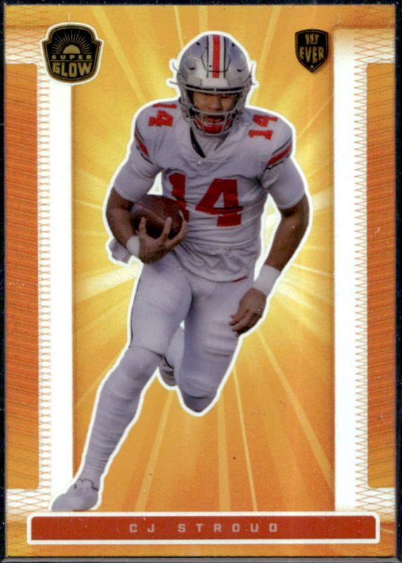 The CJ Stroud 2021 Super Glow #16 Orange Glow card is 1 of 131 CJ Stroud's card variations in the 2021 Super Glow set being tracked by Sports Card Investor, including Base, Blue Foil, Blue Glow, Gold Foil, and Gold Glow.