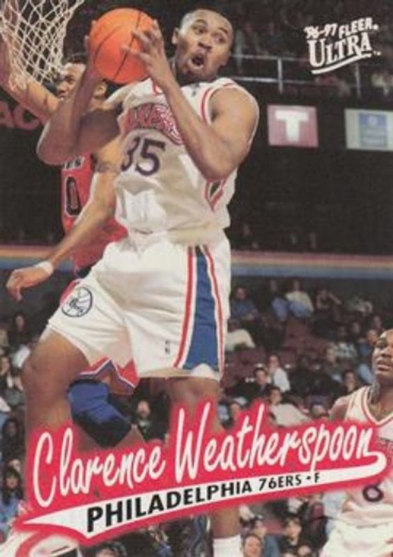 The Clarence Weatherspoon 1996 Fleer Ultra #84 Base card is 1 of 3 Clarence Weatherspoon's card variations in the 1996 Fleer Ultra set being tracked by Sports Card Investor, including Gold Medallion, and Platinum Medallion.