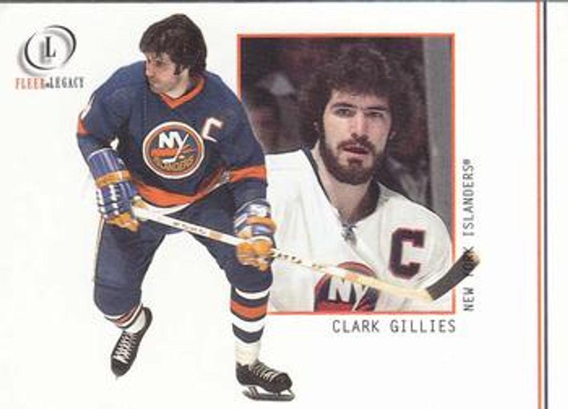 The Clark Gillies 2001 Fleer Legacy #18 Base /2002 card is 1 of 2 Clark Gillies' card variations in the 2001 Fleer Legacy set being tracked by Sports Card Investor, including Ultimate /202.