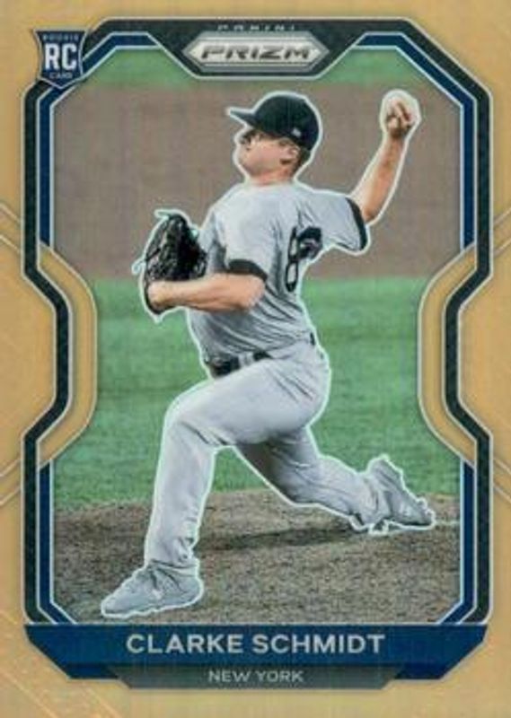The Clarke Schmidt 2021 Prizm #75 Neon Orange /100 Rookie card is 1 of 70 Clarke Schmidt's card variations in the 2021 Prizm set being tracked by Sports Card Investor, including Base, Blue, Blue Velocity, Carolina Blue, and Cosmic Haze.