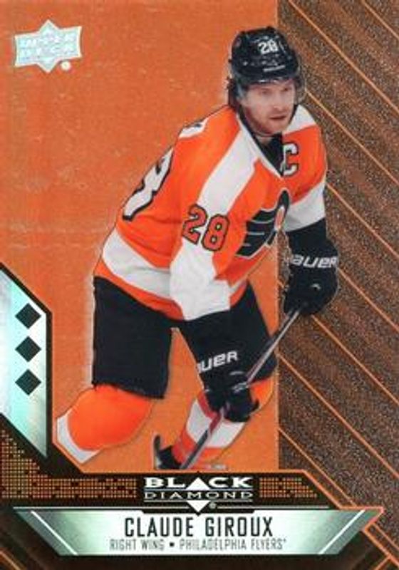 Claude Giroux's Hockey cards are available in at least 231 sets. Claude Giroux's biggest 7-day price movers are 2014 Upper Deck Black Diamond #175 Orange, 2014 Upper Deck Black Diamond #175 Sapphire /1, and 2014 Upper Deck Black Diamond #175 Base.