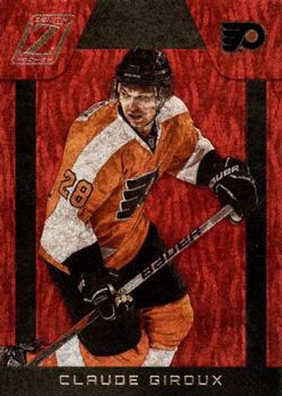 The Claude Giroux 2010 Zenith #1 Red Hot card is 1 of 5 Claude Giroux's card variations in the 2010 Zenith set being tracked by Sports Card Investor, including Base /999, White Hot /25, Chasing the Cup, and Team Logo die-cut Jerseys.