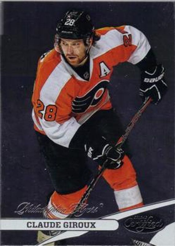 The Claude Giroux 2012 Certified #28 Base /999 card is 1 of 21 Claude Giroux's card variations in the 2012 Certified set being tracked by Sports Card Investor, including Mirror Red /100, Mirror Hot Box /75, Mirror Blue /50, Mirror Gold /25, and Mirror Emerald /5.