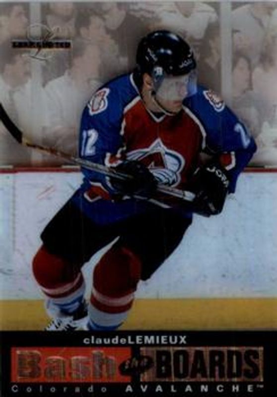 The Claude Lemieux 1996 Leaf Limited #6 Bash the Boards /3500 card is 1 of 4 Claude Lemieux's card variations in the 1996 Leaf Limited set being tracked by Sports Card Investor, including Base, Gold, and Bash The Boards - Limited Edition /350.