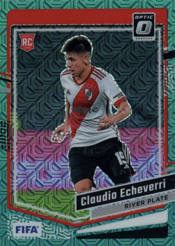 2023-24 Donruss Soccer. Claudio Echeverri Optic Teal Mojo /49 Rookie. RC.