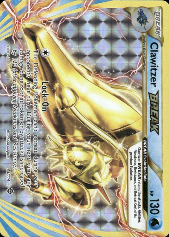 The Clawitzer BREAK 2016 XY: Steam Siege #035/114 Holo card in Raw TCG (Lightly Played) condition has moved down -$0.65 (-22.8%) in the last 30 days and was last sold for $2.20 .