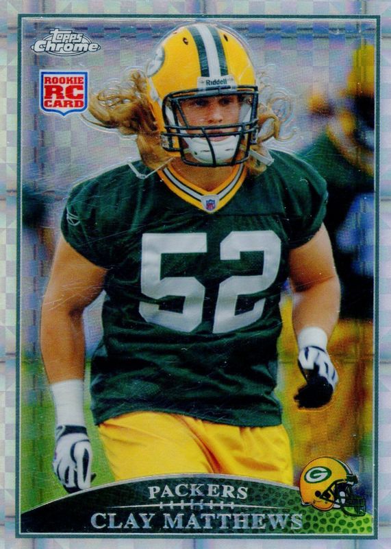The Clay Matthews 2009 Topps Chrome #TC133 X-Fractor Rookie card in Raw condition has moved up $3.50 (+21.2%) in the last 30 days and was last sold for $20.00 .
