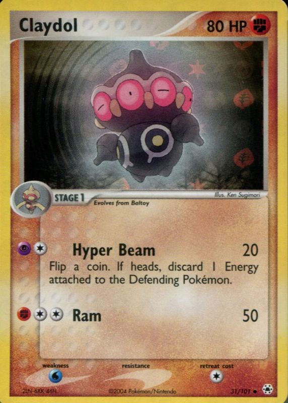 The Claydol 2004 EX: Hidden Legends #031/101 Reverse Holo card in Raw TCG (Near Mint) condition has moved down -$12.00 (-66.7%) in the last 30 days and was last sold for $6.00 .