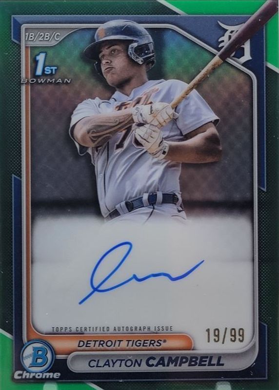 2024 Bowman Chrome Clayton Campbell 1st Auto Green #’d/99 #CPA-CCA Tigers ⭐️